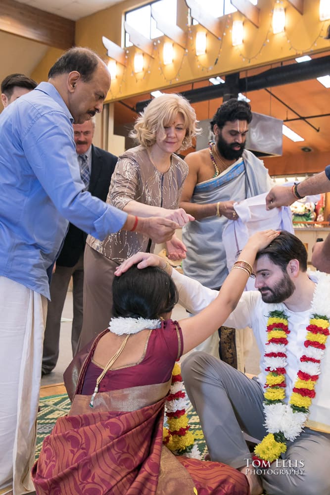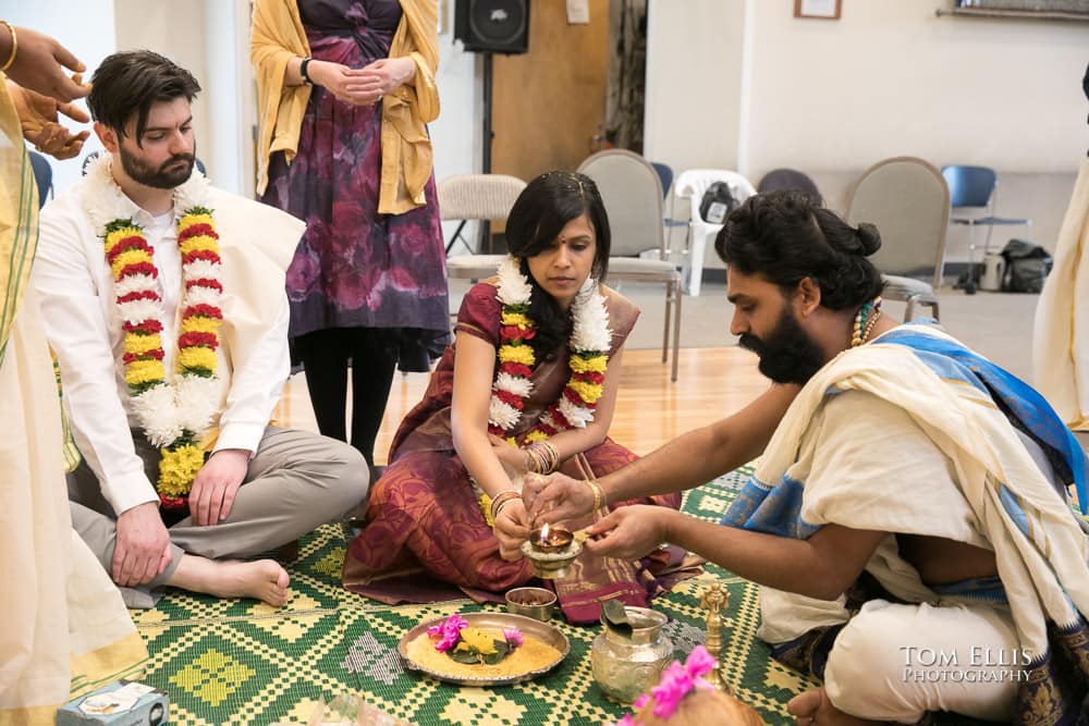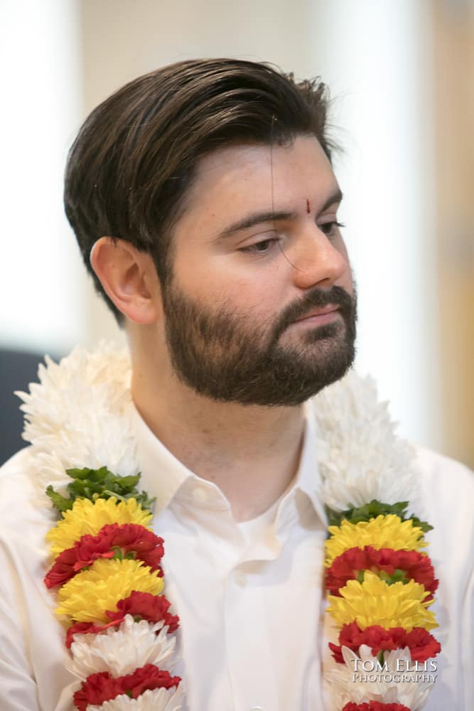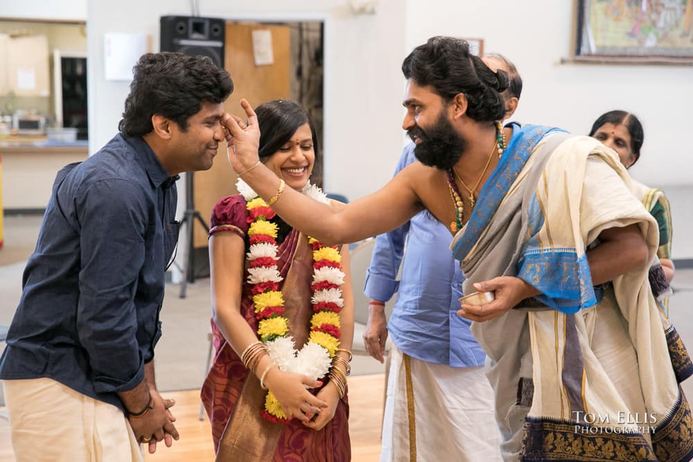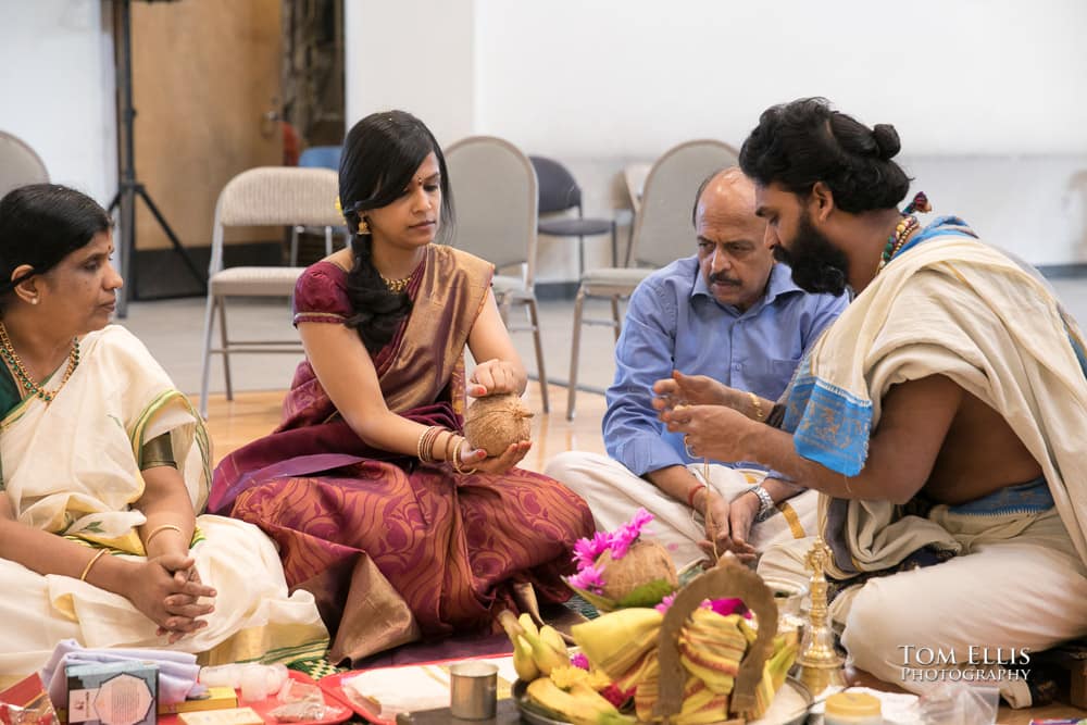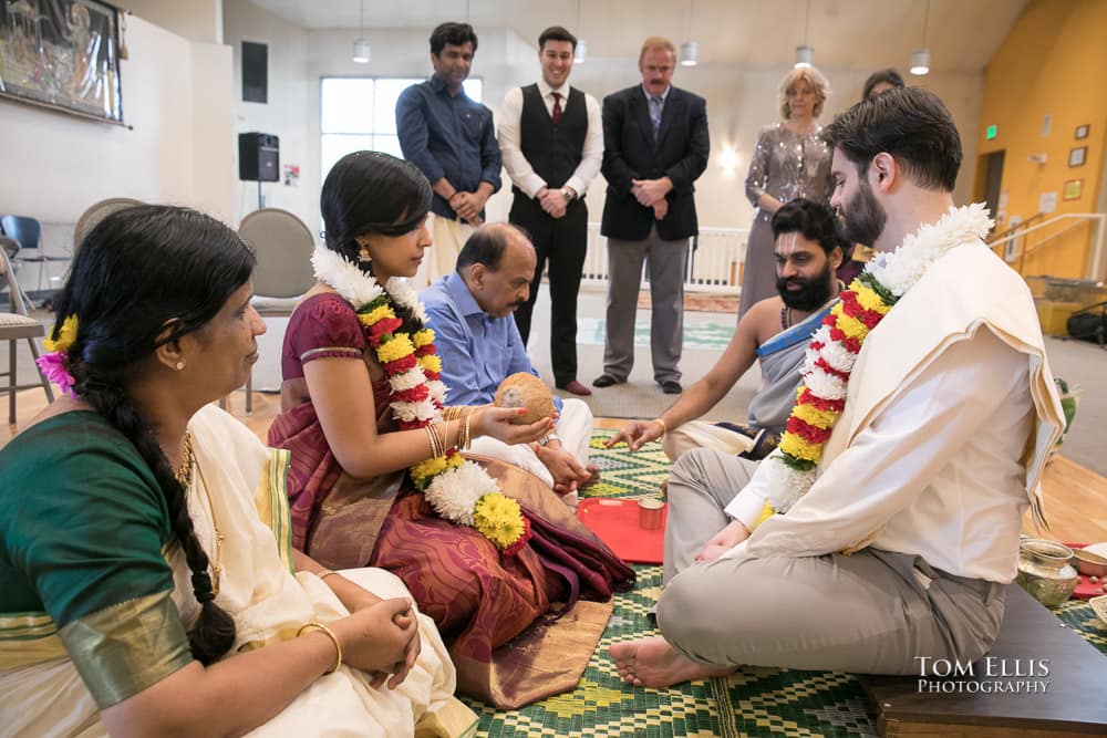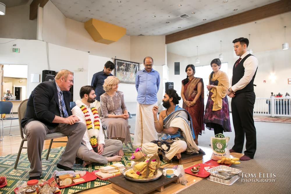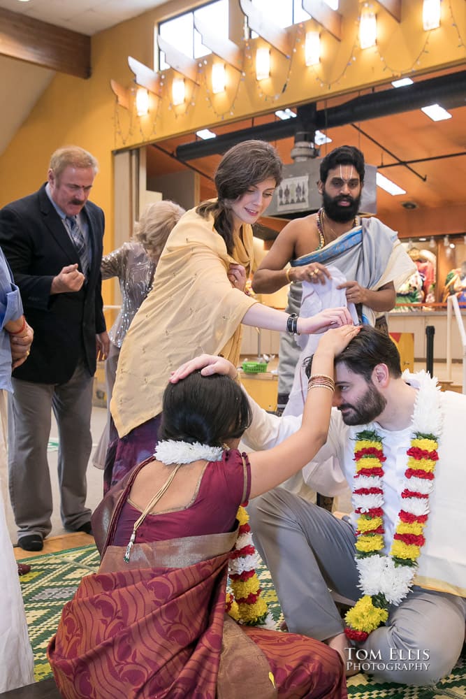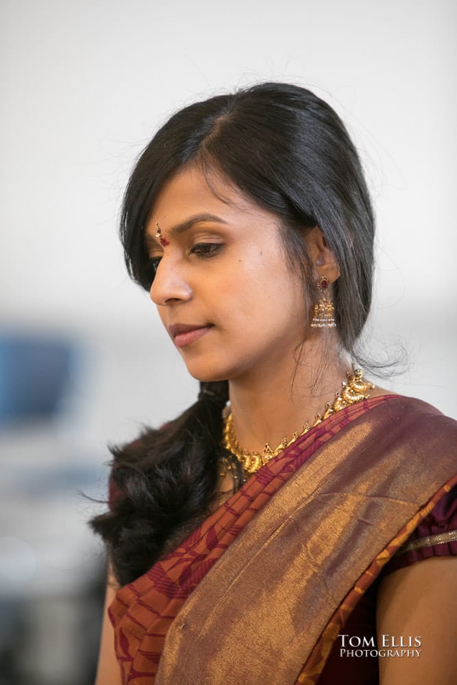 Last Friday I worked with Sree and Josh and their families to photograph Sree and Josh’s wedding at the Indian Temple and Cultural Center, located in Bothell WA. This was actually Part One of a two-wedding day; the first wedding being this one, a traditional Hindu wedding ceremony, and the second wedding a civil ceremony taking place at the Seattle Municipal Courthouse. Sorry, you’ll have to wait a bit longer to see Part Two, I’ll be blogging that ceremony in a couple of days!