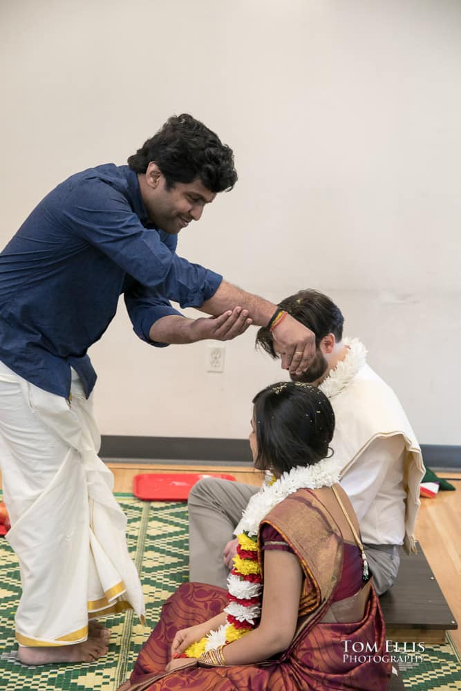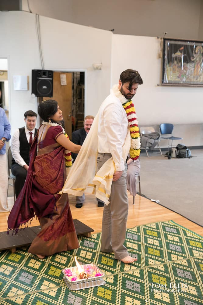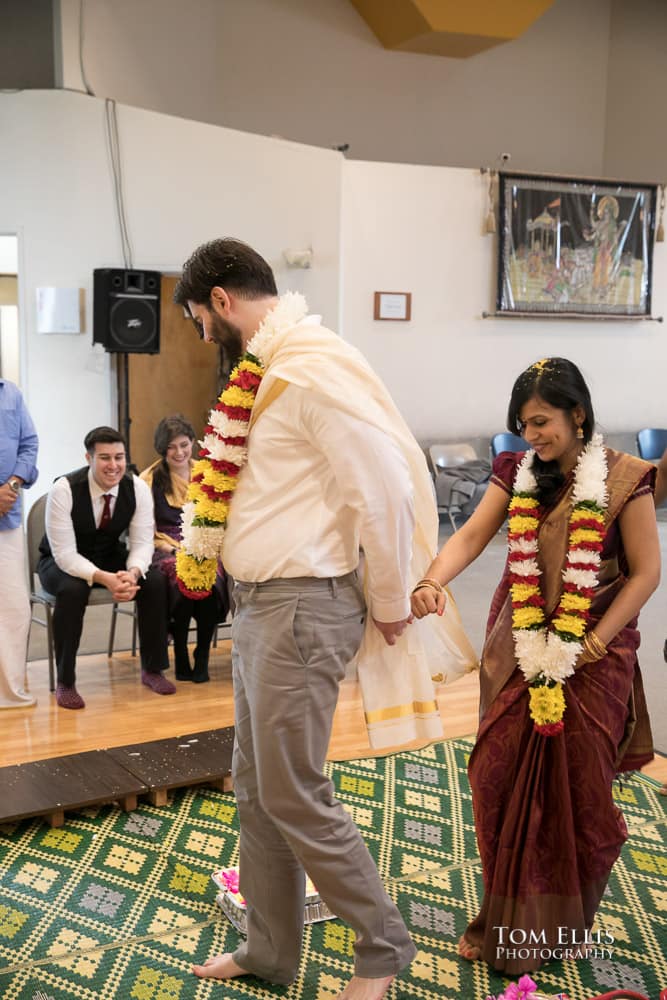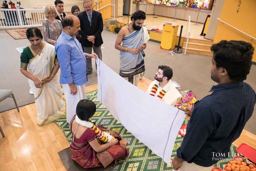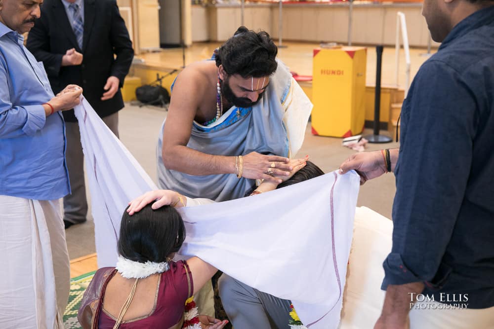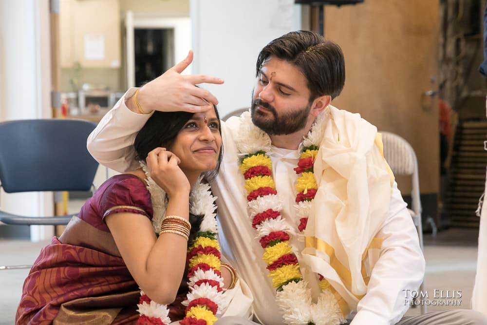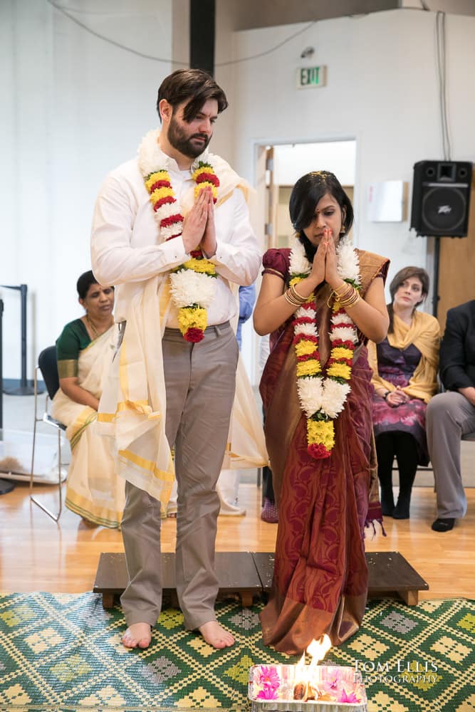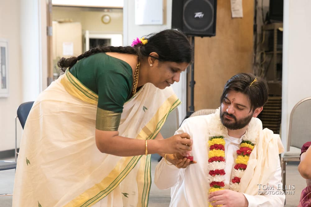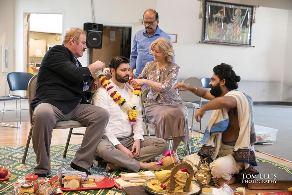 Last Friday I worked with Sree and Josh and their families to photograph Sree and Josh’s wedding at the Indian Temple and Cultural Center, located in Bothell WA. This was actually Part One of a two-wedding day; the first wedding being this one, a traditional Hindu wedding ceremony, and the second wedding a civil ceremony taking place at the Seattle Municipal Courthouse. Sorry, you’ll have to wait a bit longer to see Part Two, I’ll be blogging that ceremony in a couple of days!