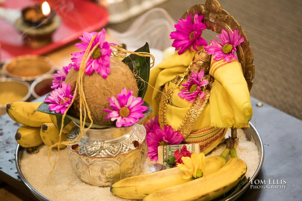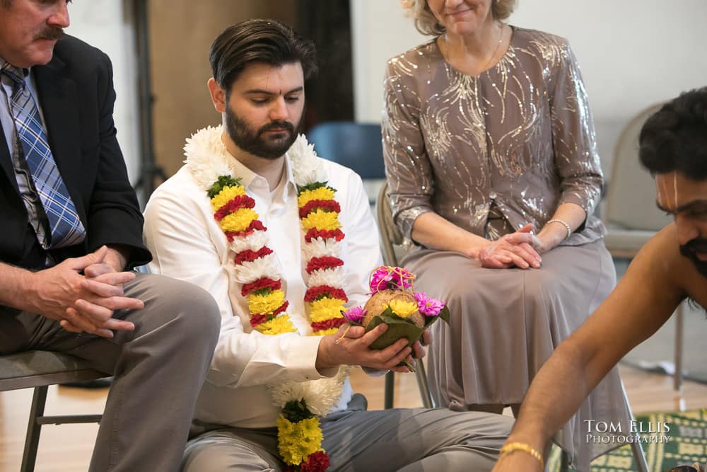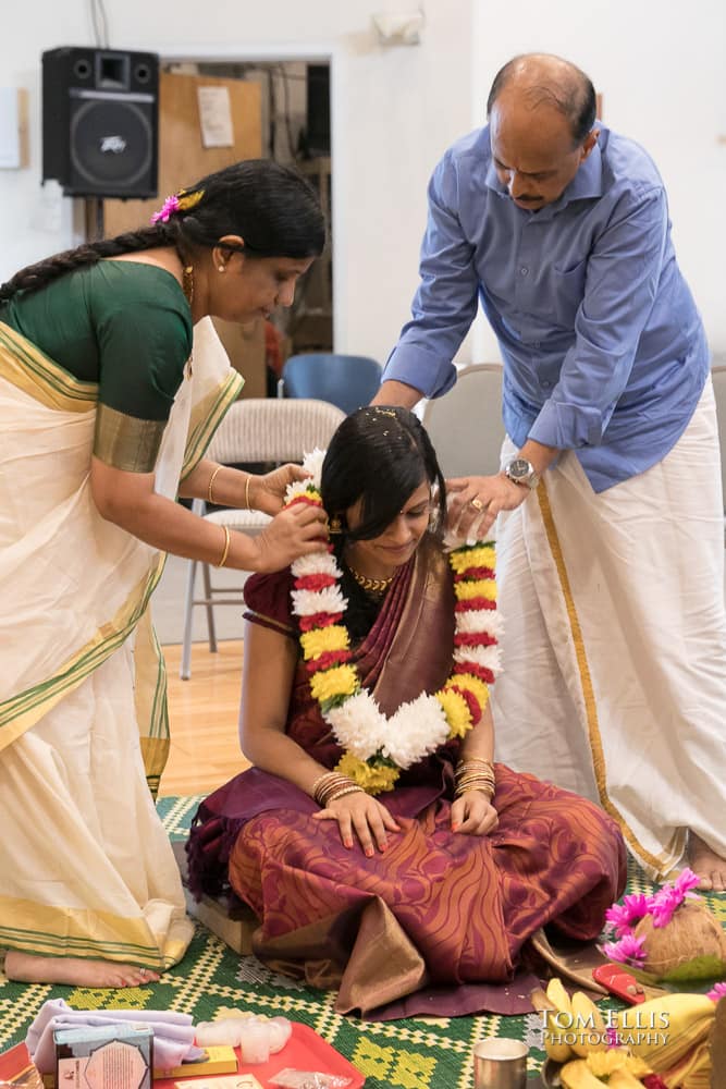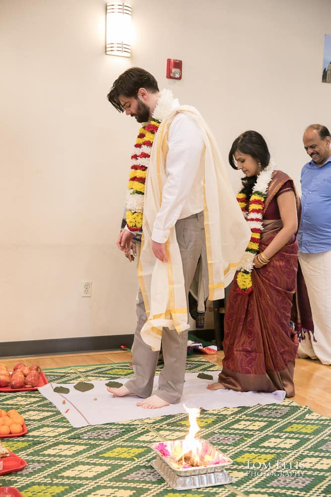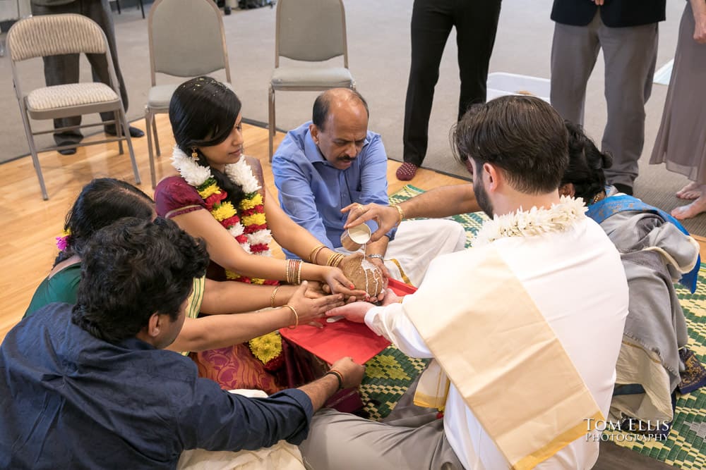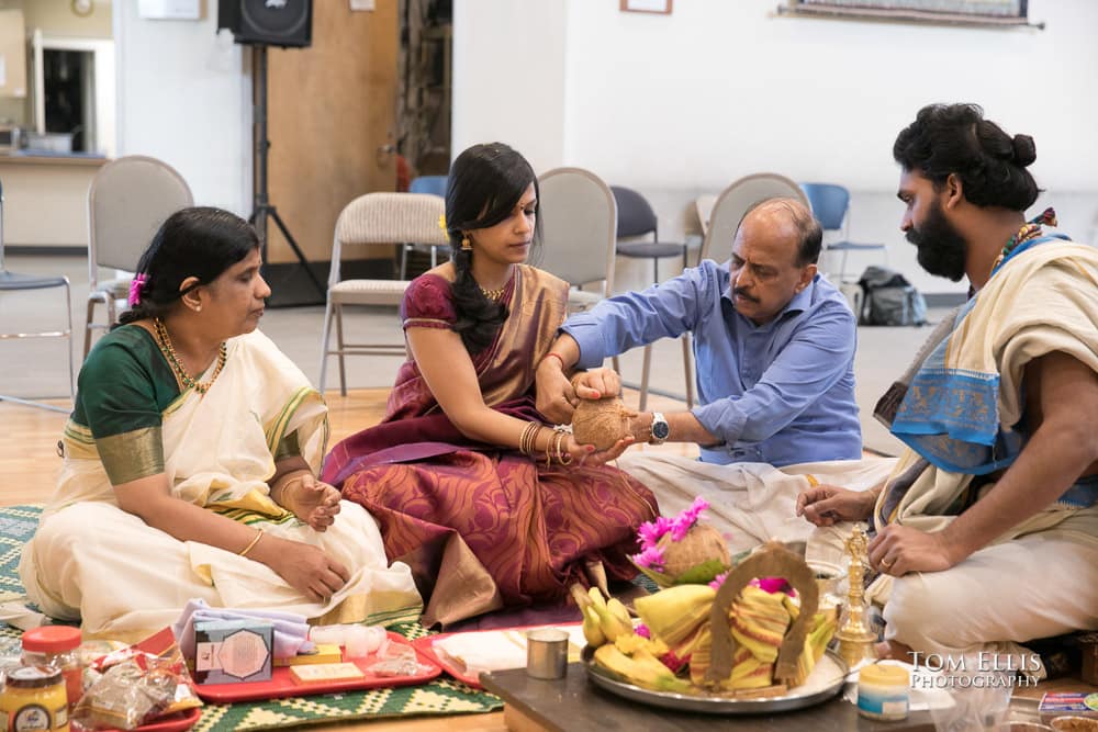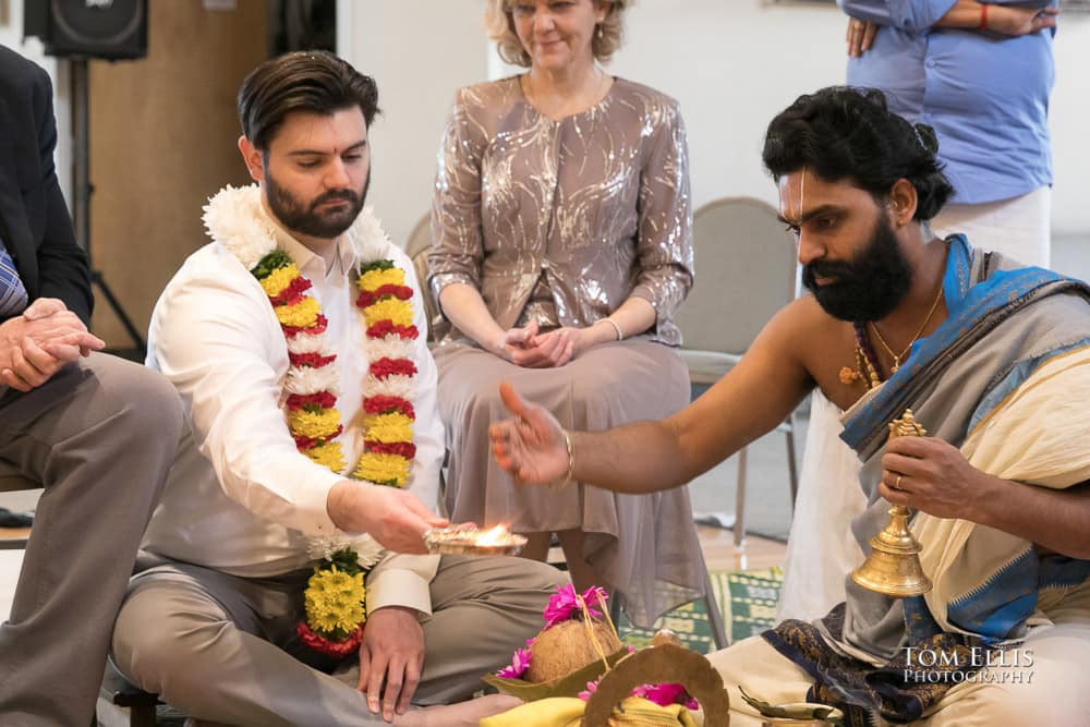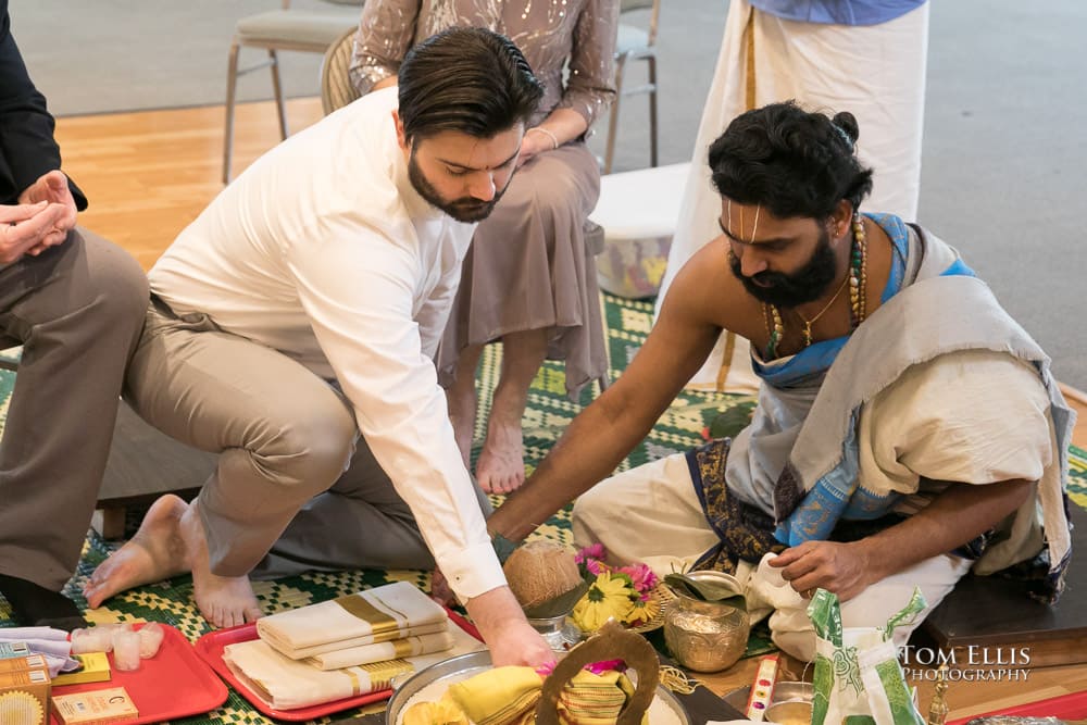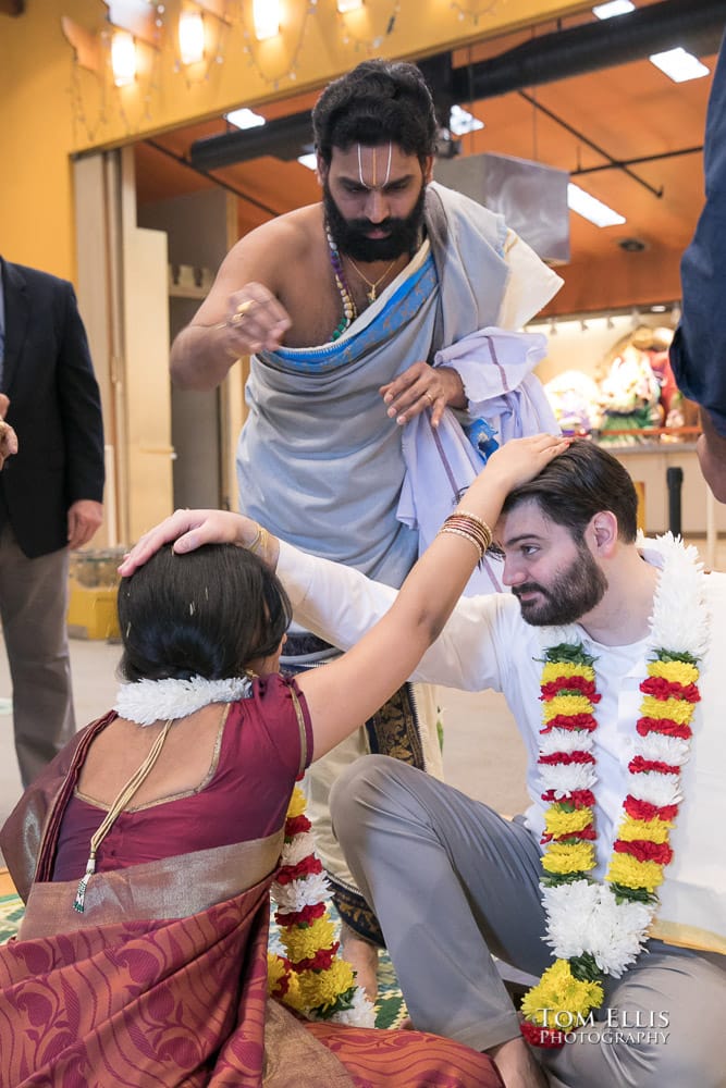 Last Friday I worked with Sree and Josh and their families to photograph Sree and Josh’s wedding at the Indian Temple and Cultural Center, located in Bothell WA. This was actually Part One of a two-wedding day; the first wedding being this one, a traditional Hindu wedding ceremony, and the second wedding a civil ceremony taking place at the Seattle Municipal Courthouse. Sorry, you’ll have to wait a bit longer to see Part Two, I’ll be blogging that ceremony in a couple of days!