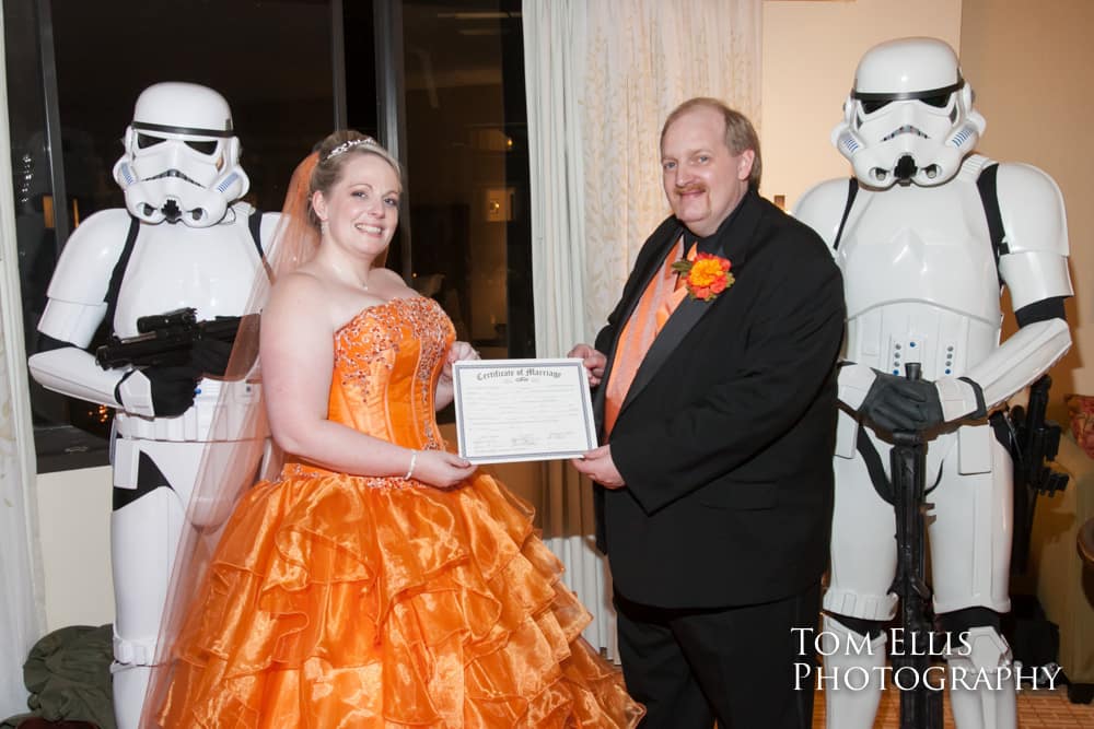 To make things even better, Tom arranged to have two Imperial Storm Troopers on hand the escort Laura down the aisle, to the Imperial March from Star Wars (Darth Vader’s theme music). And how can ANY party not be great when you have Storm Troopers?! (OK, I’ll admit that I am also a big Sci-Fi and Fantasy fan).