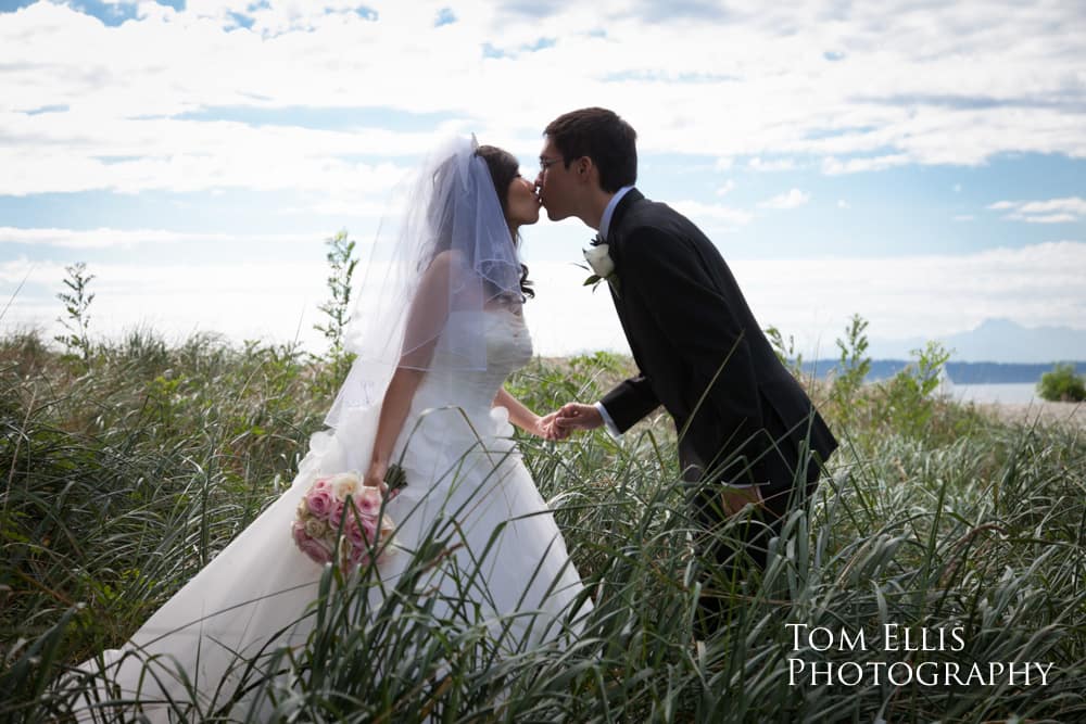 Here are a few photos from Qi and Jonathan’s wedding on September 1 at the Columbia Tower Club, with a stop for photos first at Golden Gardens Park