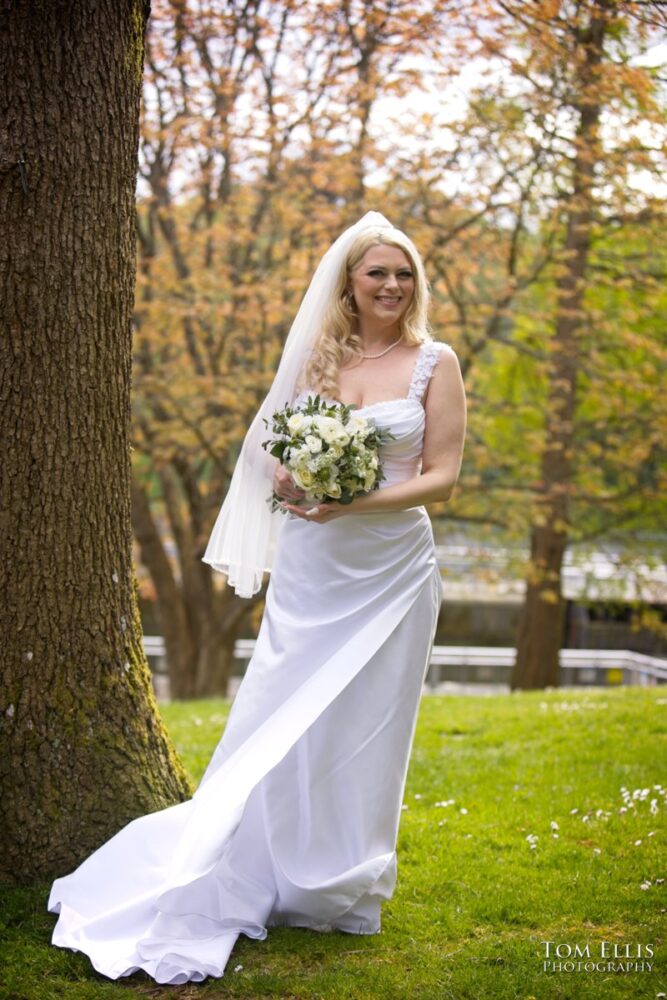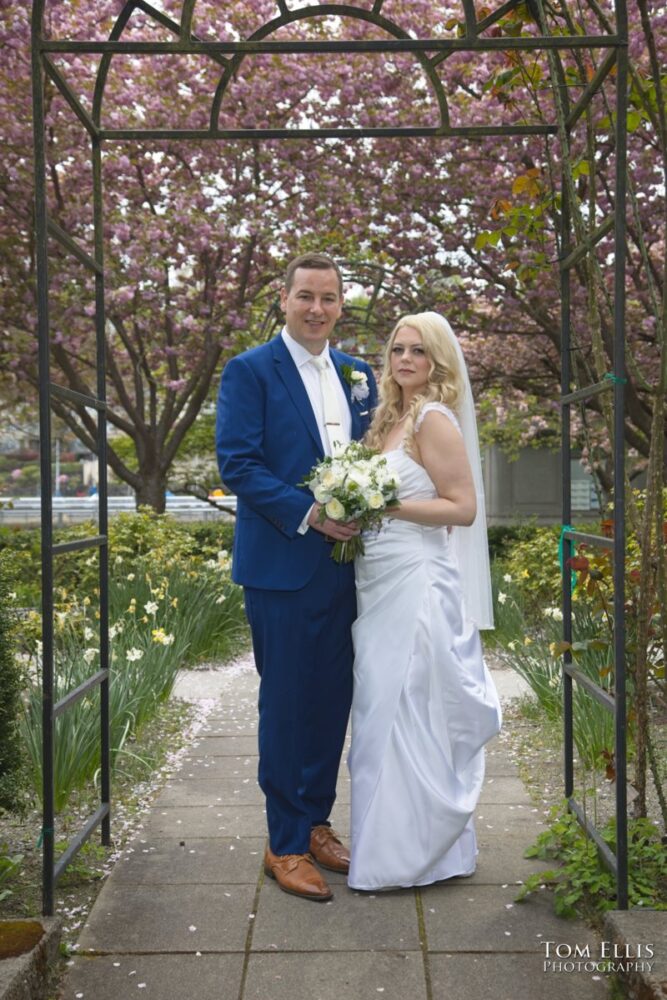 The day of the wedding I met Sam and Lucas at Ray’s several hours before the scheduled time for the ceremony. The plan was to start by driving to the nearby park at the Ballard Locks to take some bride and groom pre-ceremony photos. Fortunately the weather was cooperative, with clouds and occasional glimpses of the sun.